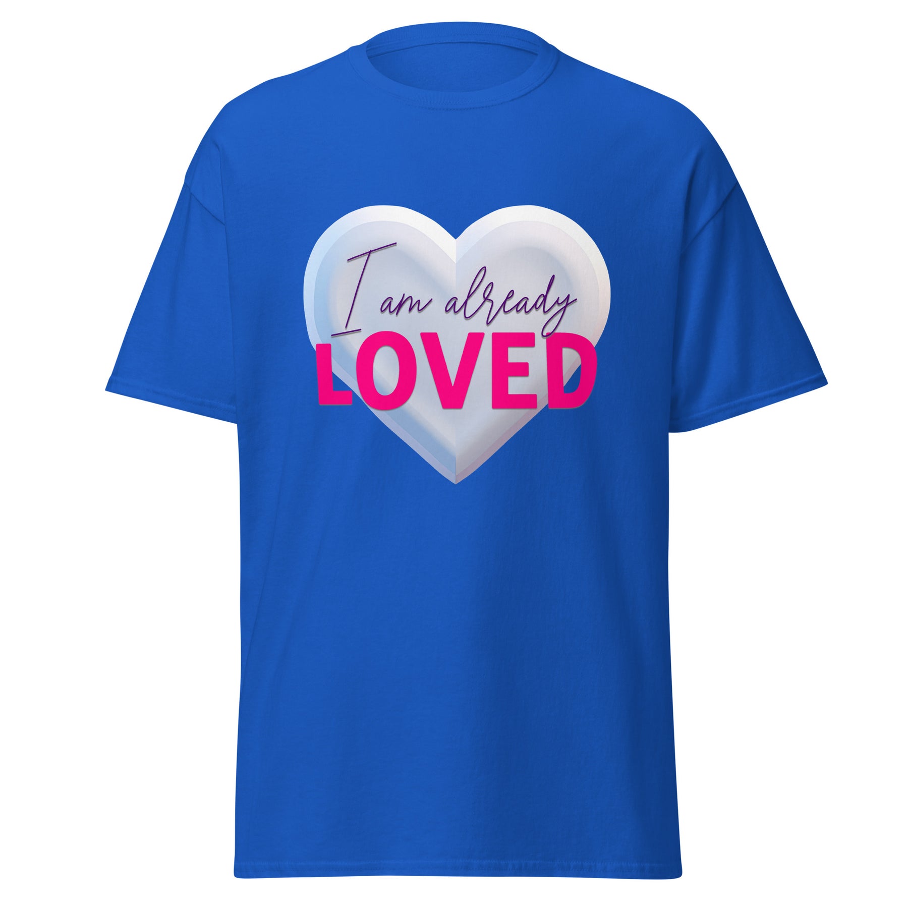 Stop striving for approval and rest in the truth that you are Already LOVED. This vibrant Christian t-shirt combines a bold statement of faith with a stunning royal aesthetic. It serves as a daily reminder that your value isn't based on what you do, but on what He has already done.